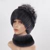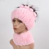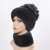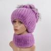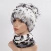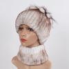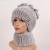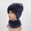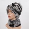 Knitted Women Warm Rex Rabbit Fur Hat Scarf Sets Winter Natural Rex Rabbit Fur Cap Scarves Russia Lady Fur Hats Muffler 2 Pieces