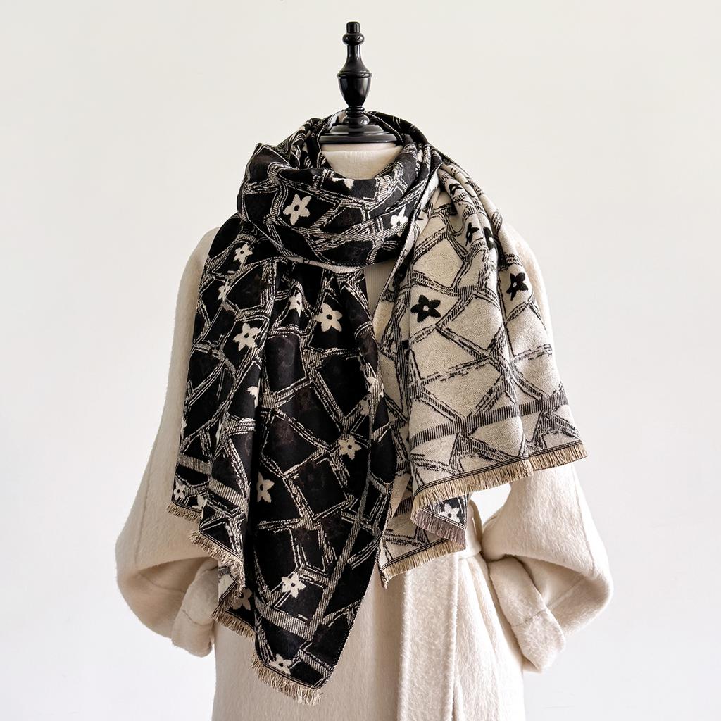 Women Fashion Floral Poncho Imitation Cashmere Winter Warm Scarves Shawl Wrap Thick Pashmina Blanket Soft Female Accessory Scarf