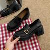 Schwarze Retro-Dicke-High-Heel-Kleine-Lederschuhe Damen 2025 Neu Herbst Rock Erhöhend Vielseitige Slipper