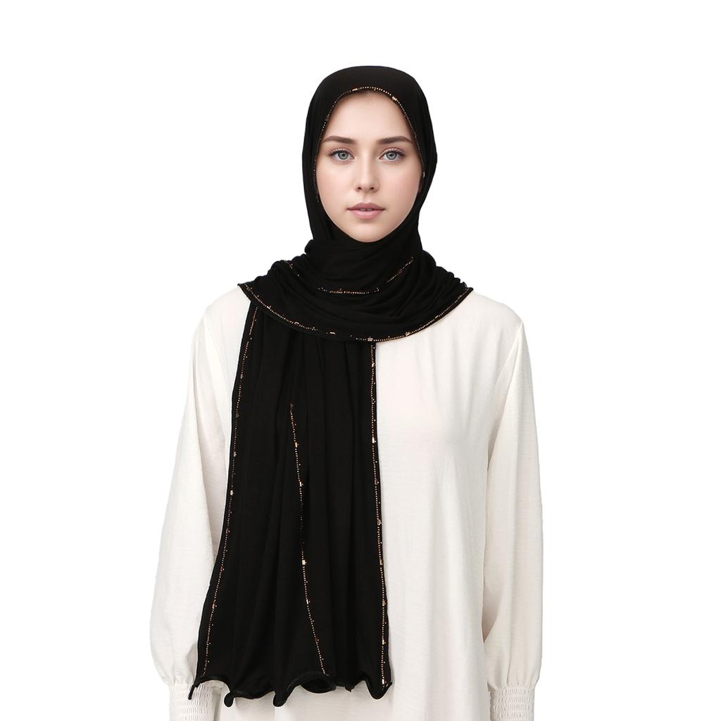 Muslim Jersey Hijab Scarf With Beads Rhinestones Shimmer Headscarf Women Premium Jersey Shawl Luxury Design Turban Plain Wraps
