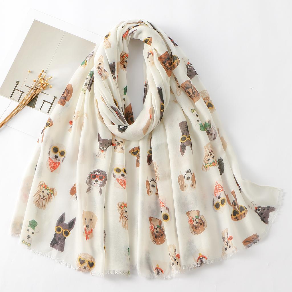 Mode Bedruckte Hunde Fransen Schals Damen Baumwolle Viskose Schal Reise Sonnenschutz Schal Tierdruck Schal 180*85cm