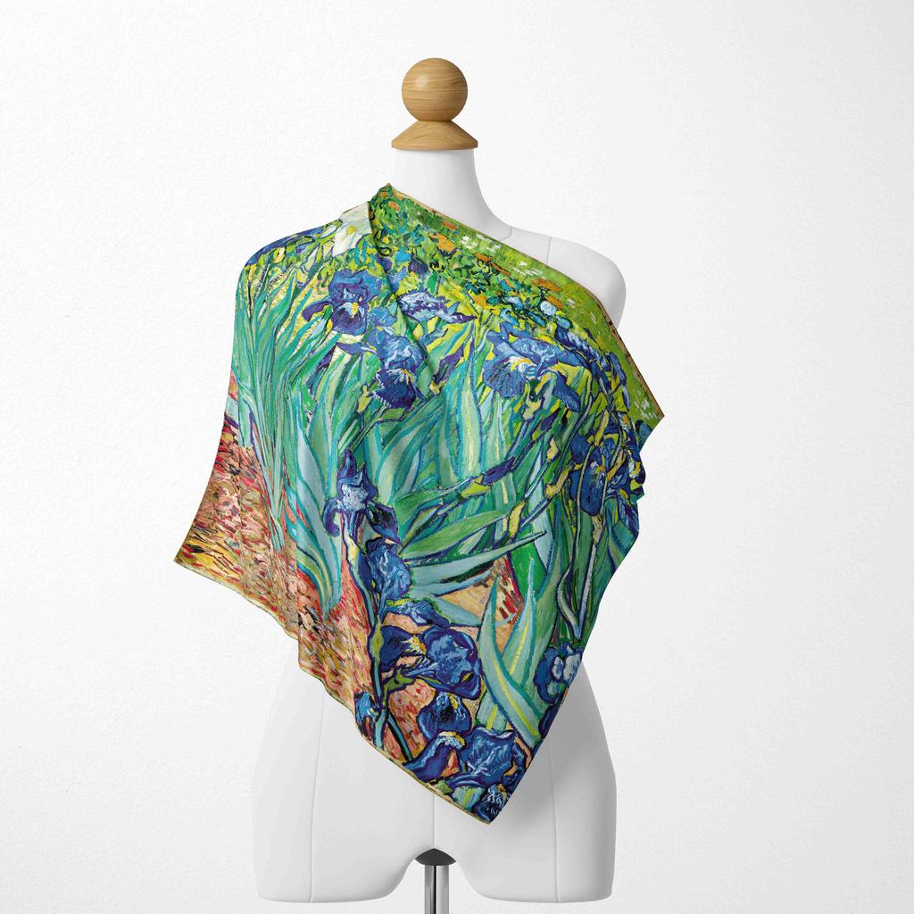 70CM*70CM Van Gogh Oil Painting Fashion Scarves for Women Print Silk Satin Hijab Scarf Female Luxury Brand Square Shawl Scarfs