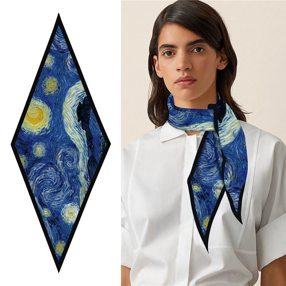Oil Painting Diamond Scarf Woman Fashion Silk Scarf Luxury Bandana Headband Hijab Foulard Neckerchief Shawl