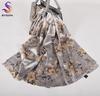 [BYSIFA] Grey Pink Peony Women Satin Long Silk Scarf Shawl Chinese Style Scarves Printed Fall Winter Female Head Scarf 160*70cm