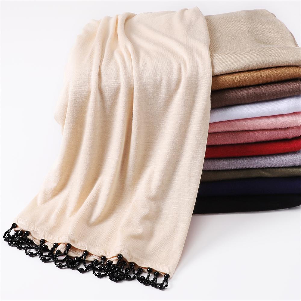 Handmade Beads Hijabs Mercerized Cotton Elasticity Jersey Hijab Muslim Women Basic Head Wrap Plain Solid Scarf Headscarf