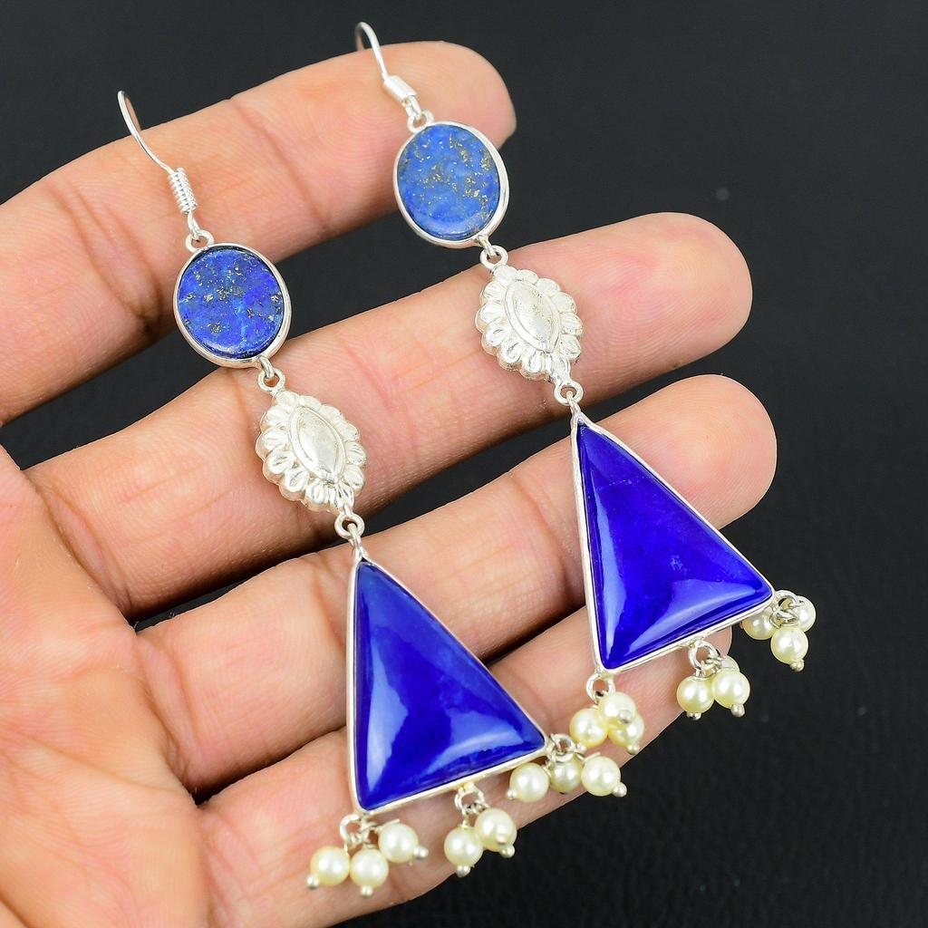 Frauentag Angebot Lapislazuli Stein Sterling Silber Hängeohrringe Schmuck