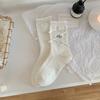 Female Sweet Embroidered Letter Bow Lace Boneless Medium Tube Pile Socks