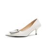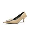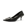Europäische Station Damen Schuhe 2025 Frühling und Herbst Neu Niedriger Absatz Spitzkopf Flacher Ausschnitt Metallschnalle Hohe Absätze Tägliche Pendlerschuhe