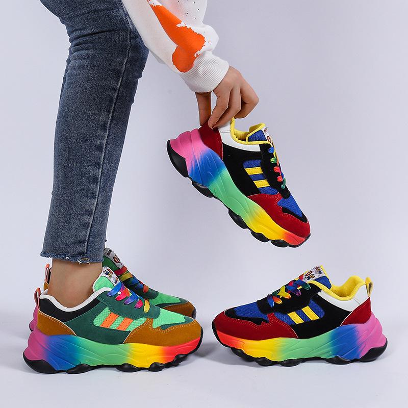 2025 Frühling und Herbst neue Außenhandel Übergröße Plateau Dad Schuhe lässige Farbsohle Muffin Damenschuhe Übergröße Lagerware
