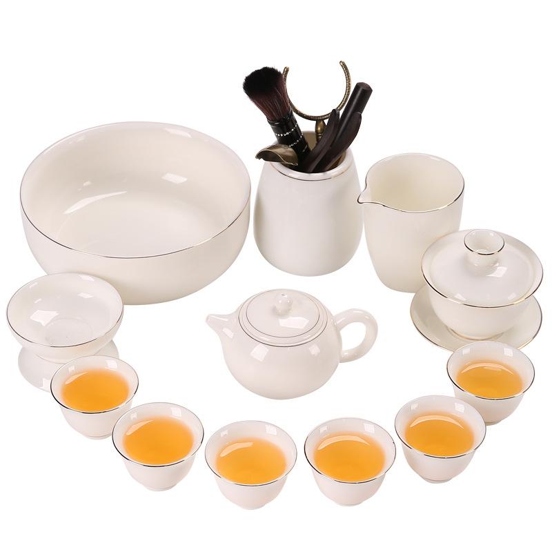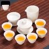 Suet Jade Kung Fu Tea Set Home Living Room Office Light Luxury Tea High-end Gift Box Cover Bowl Teacup Complete Set