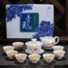 Kung Fu Teeset Keramik Teetasse Weißes Porzellan Komplettes Set Blau-Weiß Teetasse Deckel Schale Teeset
