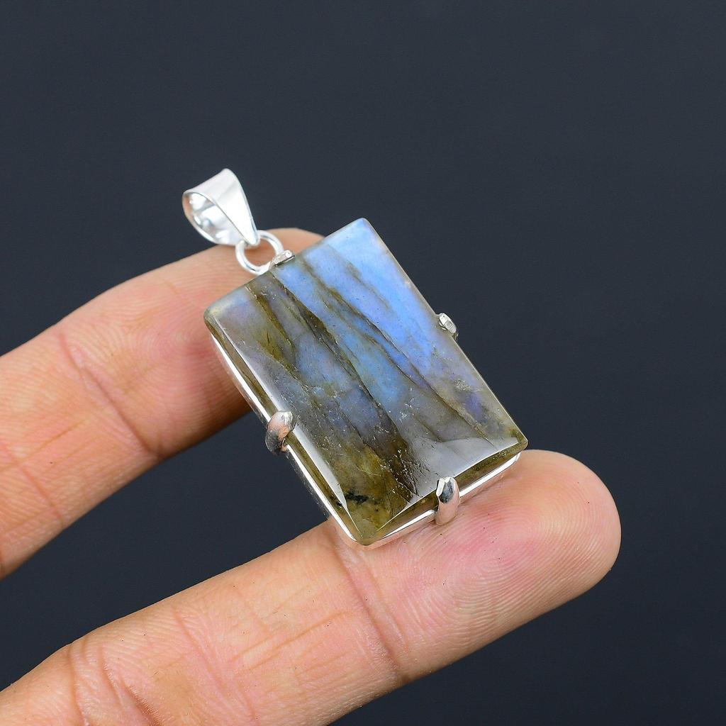 Jubiläumsgeschenk für sie Natur Labradorit Edelstein Anhänger 925 Silber