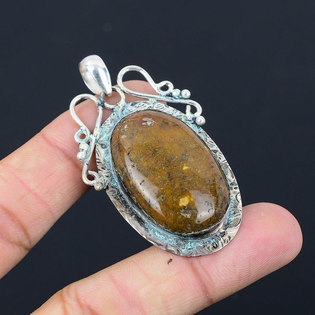 Friendship Day Deal Natural Seam Agate Daughter Boho Pendant 925 Sterling Silver