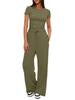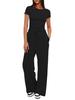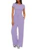 Werten Sie Ihren Alltagslook mit diesem stilvollen zweiteiligen Set auf, bestehend aus einem kurzärmeligen Oberteil mit zarten Rüschenbesätzen und einer hoch taillierten Hose mit weitem Bein.. Dieses Outfit aus hochwertigem Polyester bietet sowohl Komfort als auch Langlebigkeit und ist perfekt für einen lässigen, aber schicken Look.. Das einfarbige Design bietet eine vielseitige und zeitlose Option, die Ihre Garderobe leicht ergänzen kann.. Ideal für verschiedene Anlässe, kombiniert dieses Set mühelos Eleganz mit einer entspannten Atmosphäre.