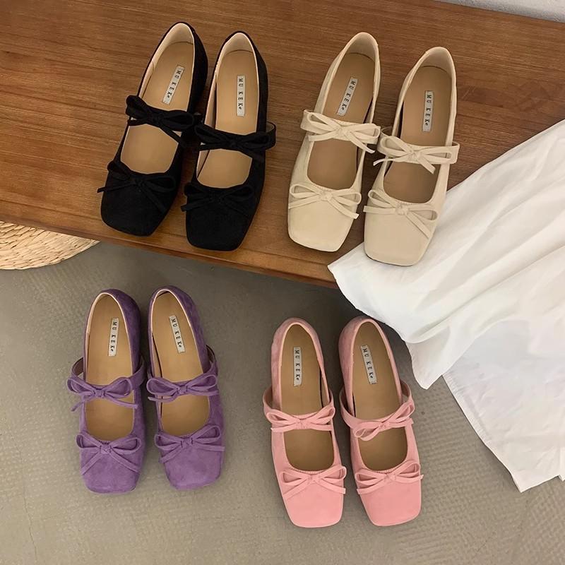 Französische Innenhöhenerhöhung Doppel-Schleife Ballett Einzelne Schuhe Damen Frühling und Herbst 2025 neue Modelle mit Rock Temperament Fee Damenschuhe