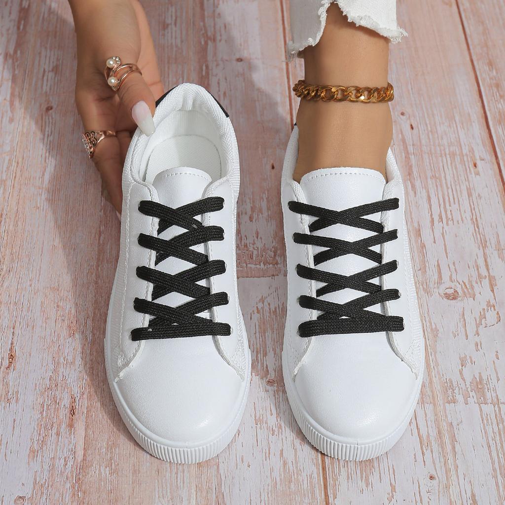 Neue Herbst Schnürschuhe kleine weiße Schuhe Damen flacher Boden Mode weißes Brett Paar Freizeitschuhe Außenhandel