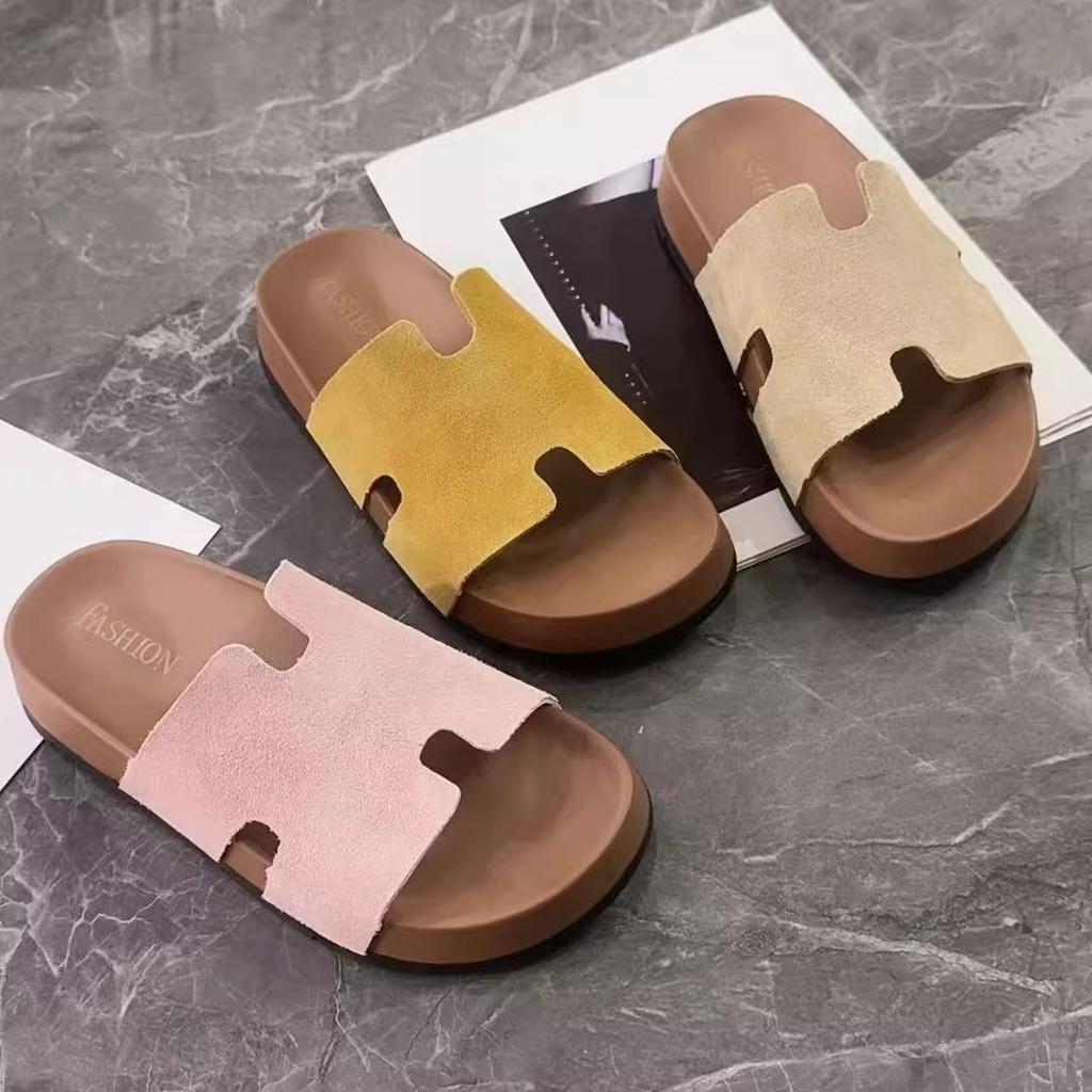 H-Version Damen-Sommer-Hausschuhe 2025 neu vielseitig flacher Boden Wort Internet-Berühmtheit weiche Sohle schön Strand cool Hausschuhe
