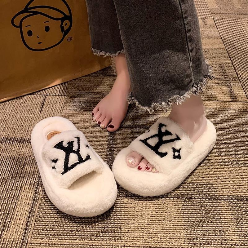 Europäisches Alphabet flauschige Hausschuhe Damenbekleidung 2025 neu Herbst und Winter dicker Boden erhöhend Internet-Berühmtheit super angesagt flauschige Baumwollpantoffeln