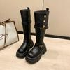 Retro faltbare Two-Wear Langstiefel für Damen 2025 Herbst neu Gürtelschnalle Britischer Stil dicker Absatz dicksohlige Reiterstiefel
