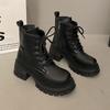Braune Martin-Stiefel Damenschuhe 2025 neu Herbst und Winter Plateau weiches Leder Britischer Stil kurze Stiefel Retro beliebte mittelhohe Stiefel