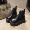 Rauchfarbene Stiefel 2025 Herbst und Winter neu, mit Fleece gefüttert, dicke Sohle, erhöhend, Martin-Stiefel, Damenmode, Chelsea-Stiefel