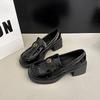 Schwarze britische High Heels Damen 2025 Herbst neue Plateau Erhöhung kleine Lederschuhe ein Pedal französische Loafer