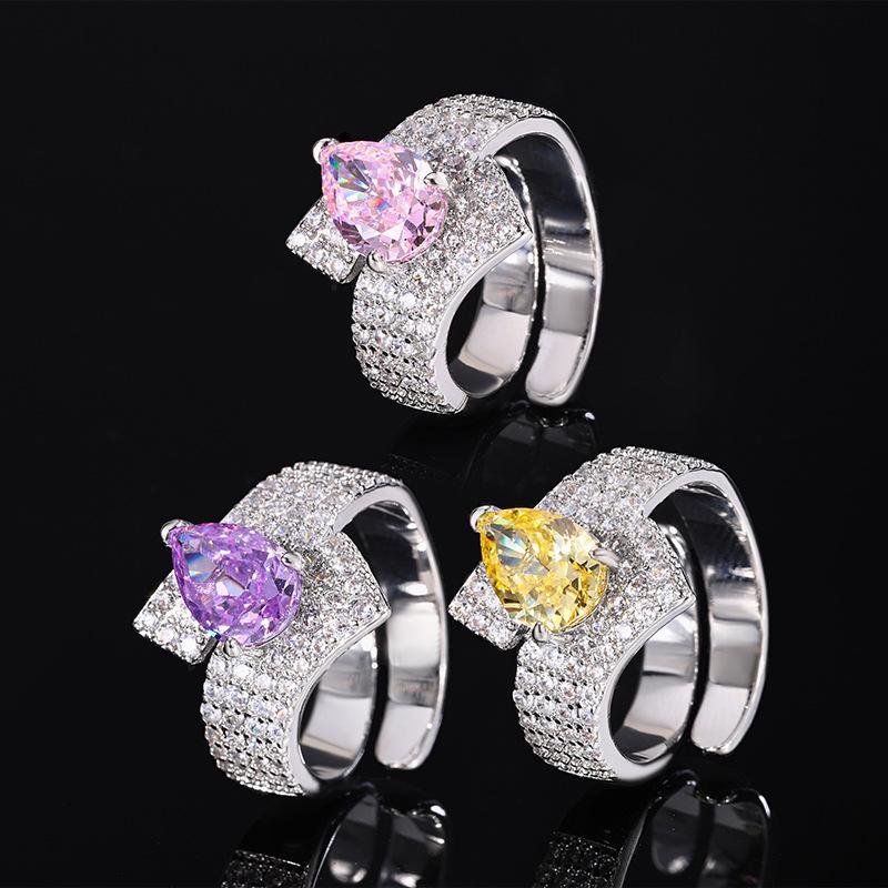Kupferboden Vergoldet Hochkohlenstoff Diamant Eis Schliff Temperament Schlichter Birnenförmiger Ring Damen 7 * 10