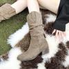 Kleine Maillard Stiefel Neue Spitzstiefel Mittelbraun Damenstiefel Plissierte Stiefel Große Größe Cowboy Stiefel