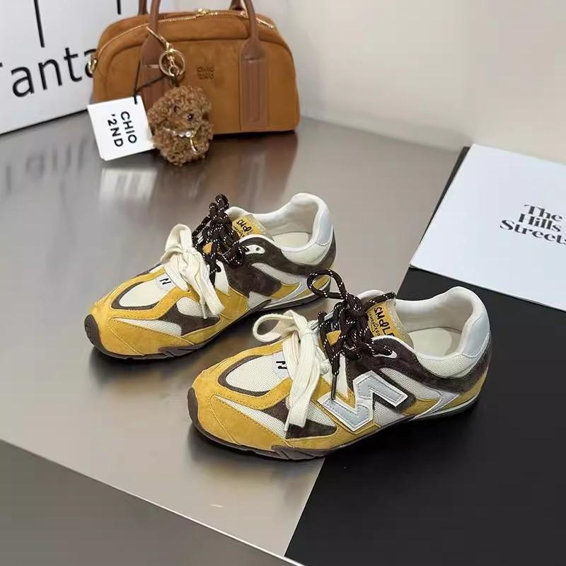 Doppelfarbiges Bandleder superweiche flache Sohle Deutsche Trainingsschuhe Damen 2025 Frühling neu vielseitiger Buchstabenfuß kleine Forrest Gump Sportschuhe