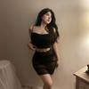 Sex Lingerie Spice Girls Suspender Dress Sexy Skinny Hip Wrap Lace Skirt Set Mesh Perspective Dating Dress