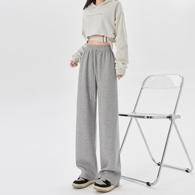 Gray fleece sweatpants autumn and winter pants women's thin high-waisted loose casual pants straight mopping women's wide-leg pants