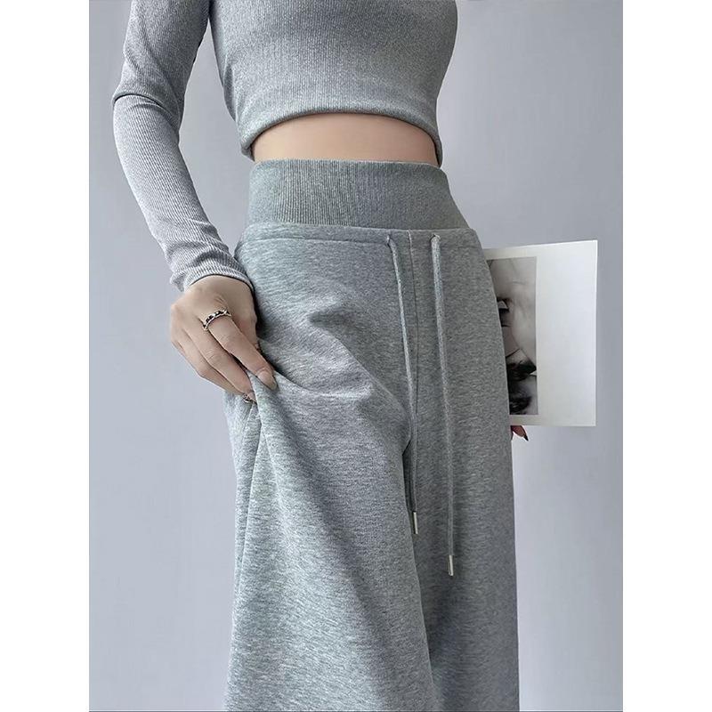 Gray drawstring sweatpants women's spring and autumn new loose straight drape sweatpants lazy wind wide leg pants