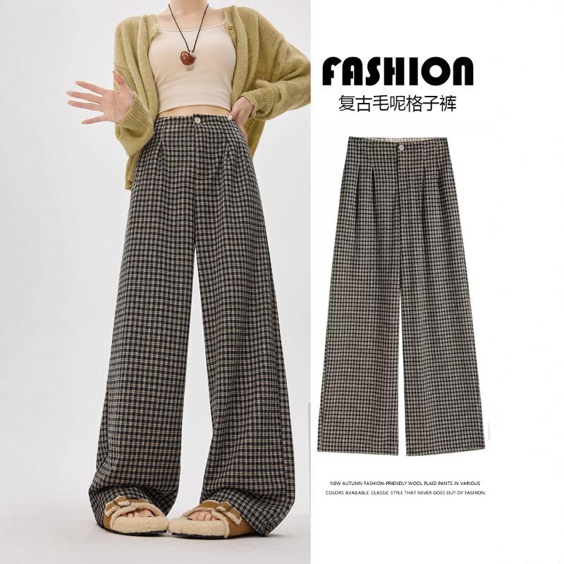 Large size plaid pants women's autumn new casual loose bf lazy style high fashion loose wide-leg pants