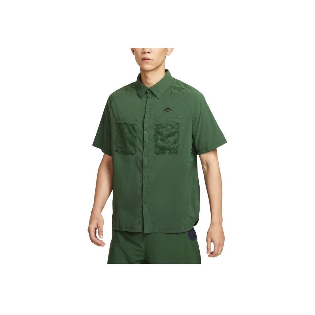 Nike Einfarbiges Hemd mit Tasche, einreihig, kurze Ärmel, Herrenhemden, Grün HV2165323
