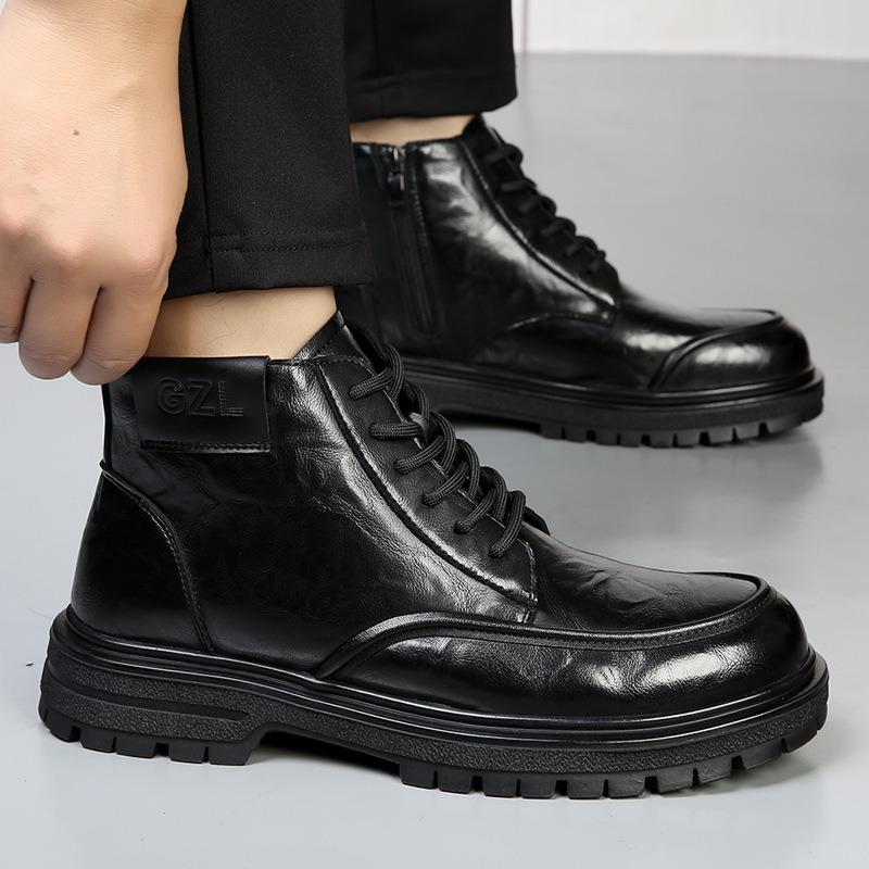 Herrenschuhe mittelhoch Martin-Stiefel Herren Workwear neu vielseitig Samt High-Top Lederschuhe trendige kurze Stiefel