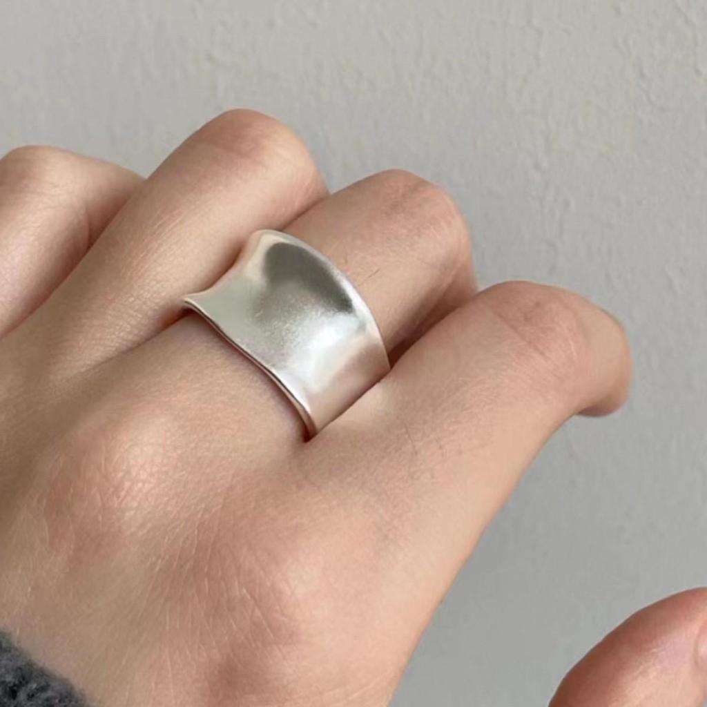 Eleganter gefrosteter matter breiter offener Ring für Damen - S925 versilbert, trendiger INS-Stil