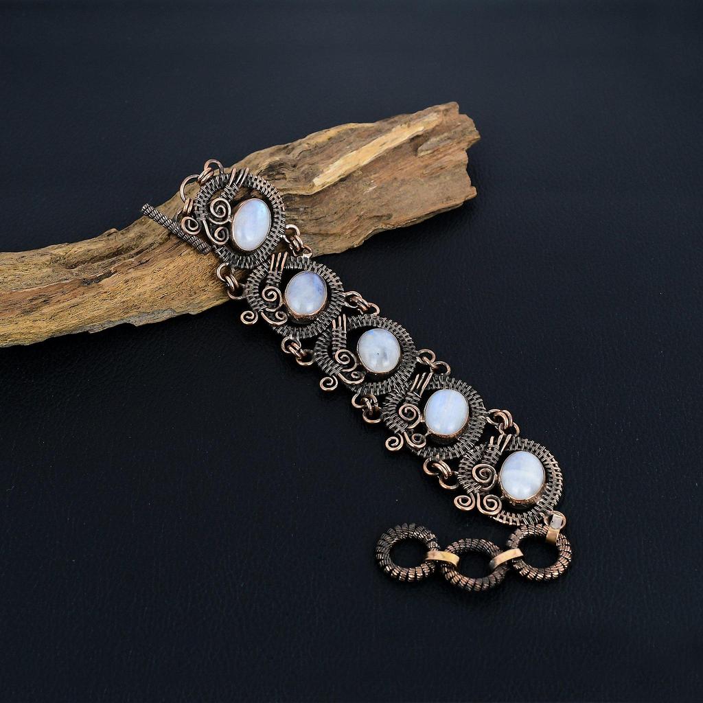 Rainbow Moonstone Bracelet Gemstone Jewelry, 999 Copper Wire Wrapped Bracelet, Adjustable Handmade Beautiful Jewelry Chain Bracelet