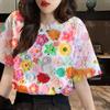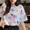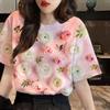 Pink beige flower 3D printed women's short sleeved T-shirt Korean clothing short sleeved shirt