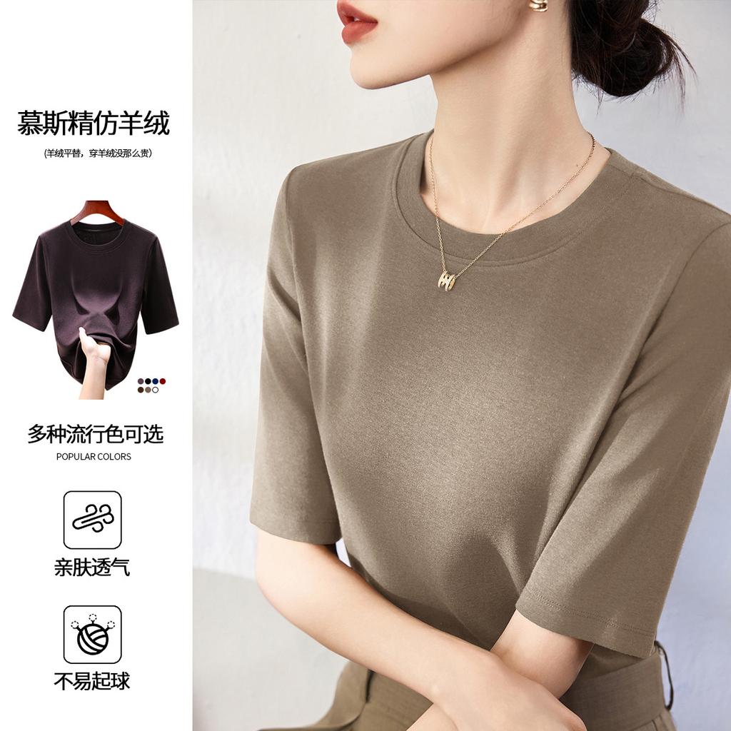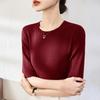 Modal cotton round neck medium-sleeved women's half-sleeved inner bottoming shirt early autumn new five-quarter-sleeved outer top