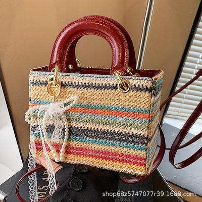 Regenbogen kleine Tasche tragbar Prinzessin Diana Tasche Damen neue Sommer Nische Kontrastfarbe gewebte Umhängetasche