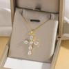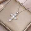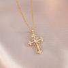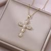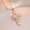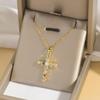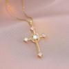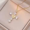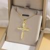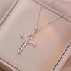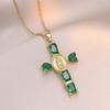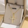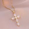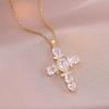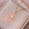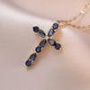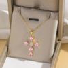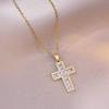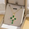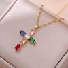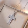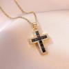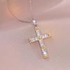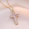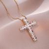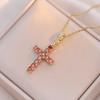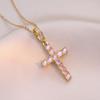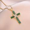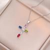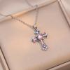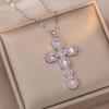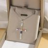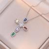 Damen Bunte Zirkon Kreuz Halskette - Nischendesign mit Voll-Diamant-Anhänger an Edelstahlkette