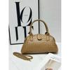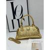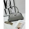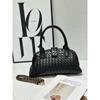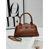 Hand-woven shell bag, genuine leather women's bag, high-end bowling handbag, crossbody shoulder bag.