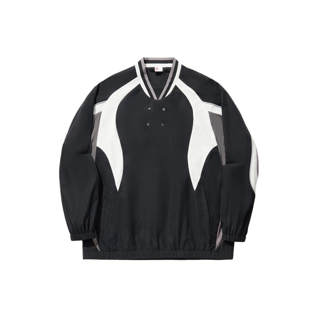 Li Ning Color Block Letter Stehkragen Pullover Sport Lockeres Sweatshirt Herren Sweatshirt Schwarz Rauchgrau ATLU035-2
