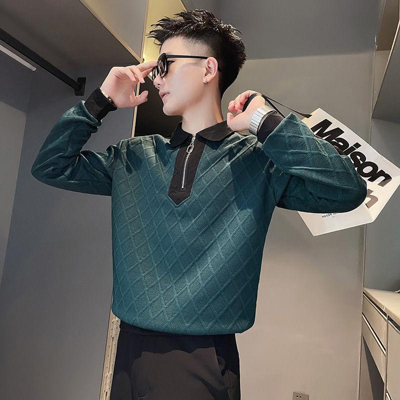 High-end Semi-zipper Sweatshirt Men's Trendy Autumn and Winter Long-sleeved T-shirt Lapel POLO Shirt Casual and Handsome Jacket