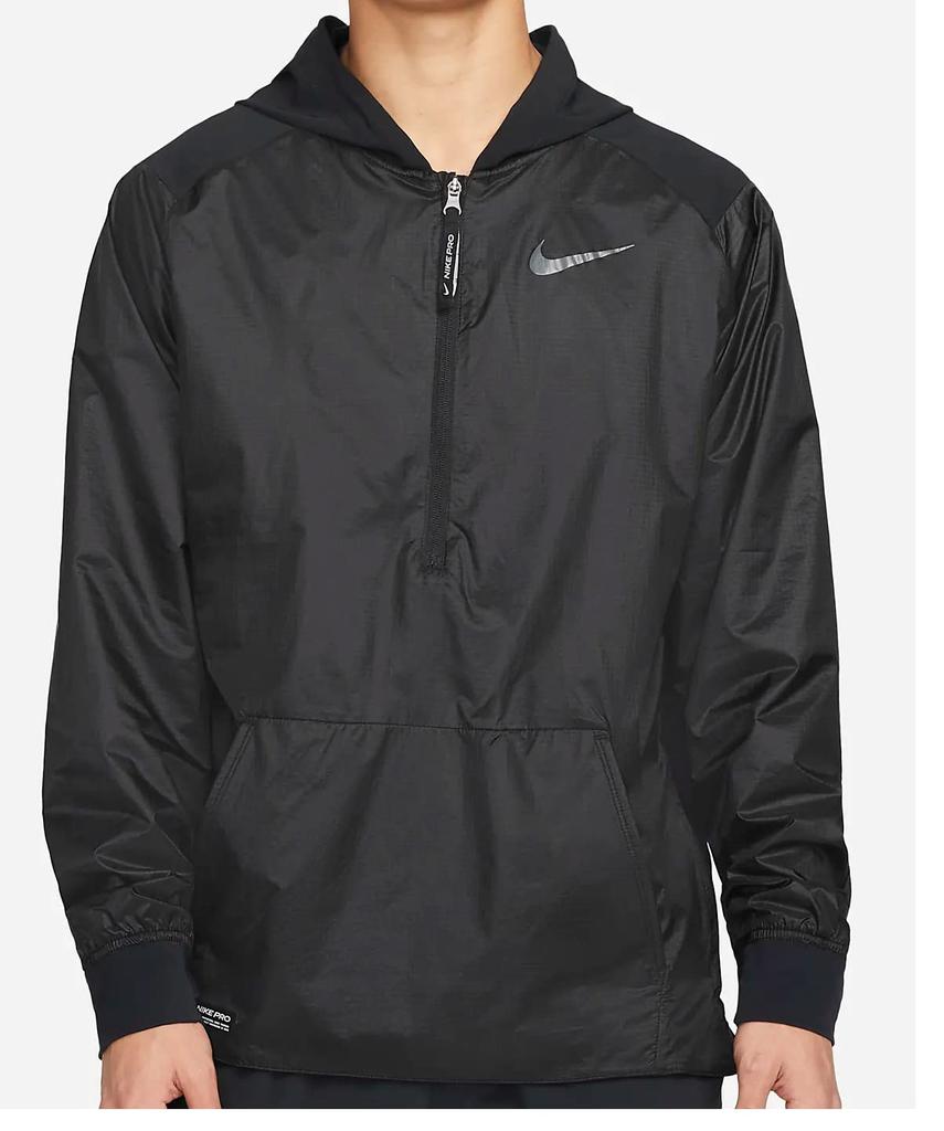 NIKE PRO Woven Training Size XL DM5537 Men's 1/2-Zip Mesh-Lined Hoodie, (176-185cm), Black,