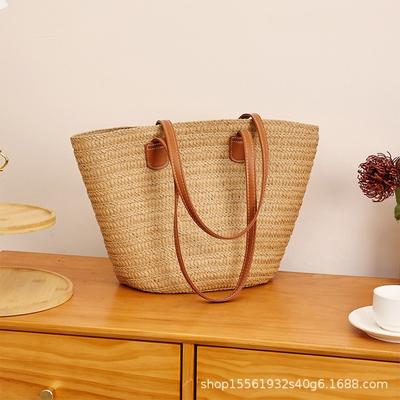 Neue lässige vielseitige Umhänge-Pendler-Tasche mit großem Fassungsvermögen, gewebte Tasche, modische gestreifte Strohtasche, Damentasche