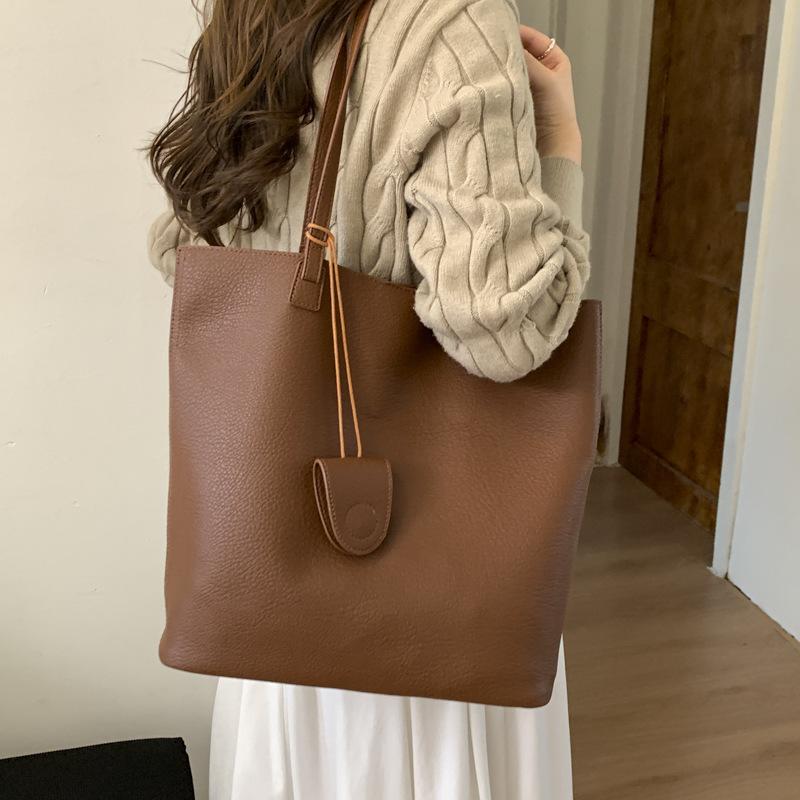 Einfache Handtasche mit Litschi-Muster, modische Bucket Bag aus weichem Leder, lässige Umhängetasche