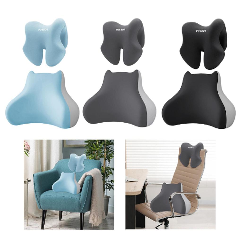 2 Stück Lendenstützkissen mit Kopfstützkissen Mehrzweck-Rückenpolster Stuhlkissen für Gaming-Stuhl Sofa Couch Reise Liegesessel