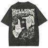 Sommer Washed Vintage Anime Hellsing Abraham Van Helsing Vampir Alucard Print T-Shirts Manga Übergroße T-Shirts