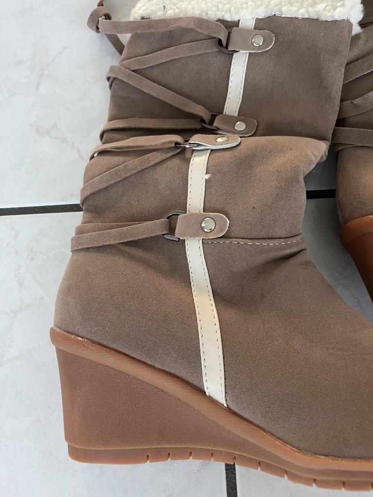 Neue Schneestiefel mit Keilabsatz, warm, bequeme Freizeitschuhe für Damen, Winter, gekreuzte Riemen, modische gefrostete Stiefel